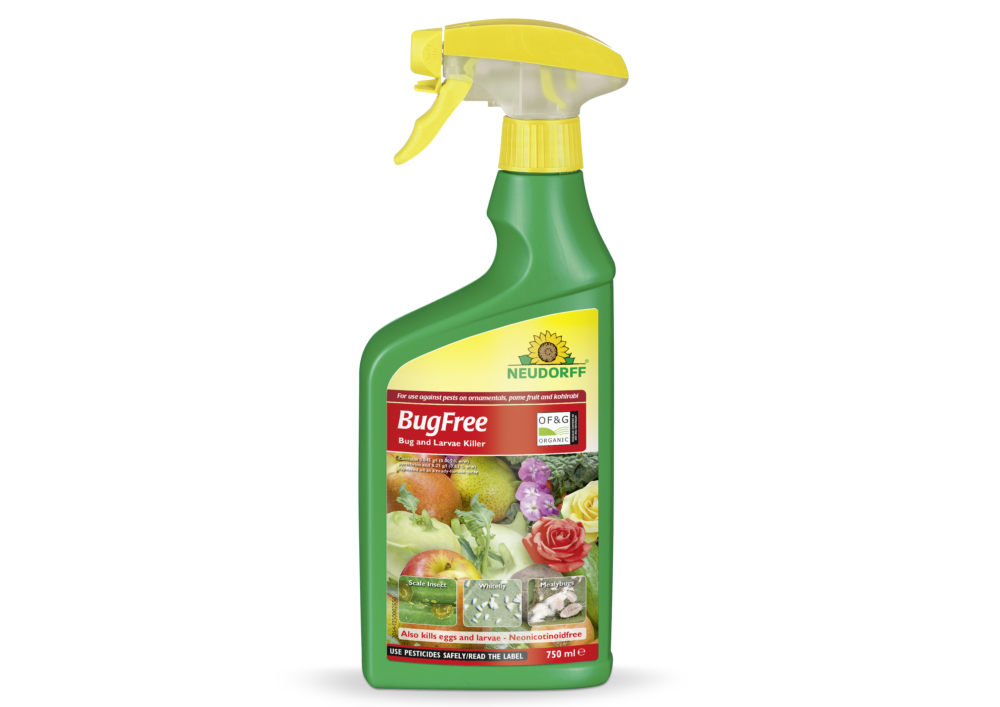 Effectively targets a wide range of sap-sucking and leaf-feeding insects, including aphids, thrips, spider mites, whiteflies, mealybugs, scale insects, beetles, and caterpillars. Also eliminates eggs and larvae. Formulated with natural ingredients and free from neonicotinoids. Certified for organic use.