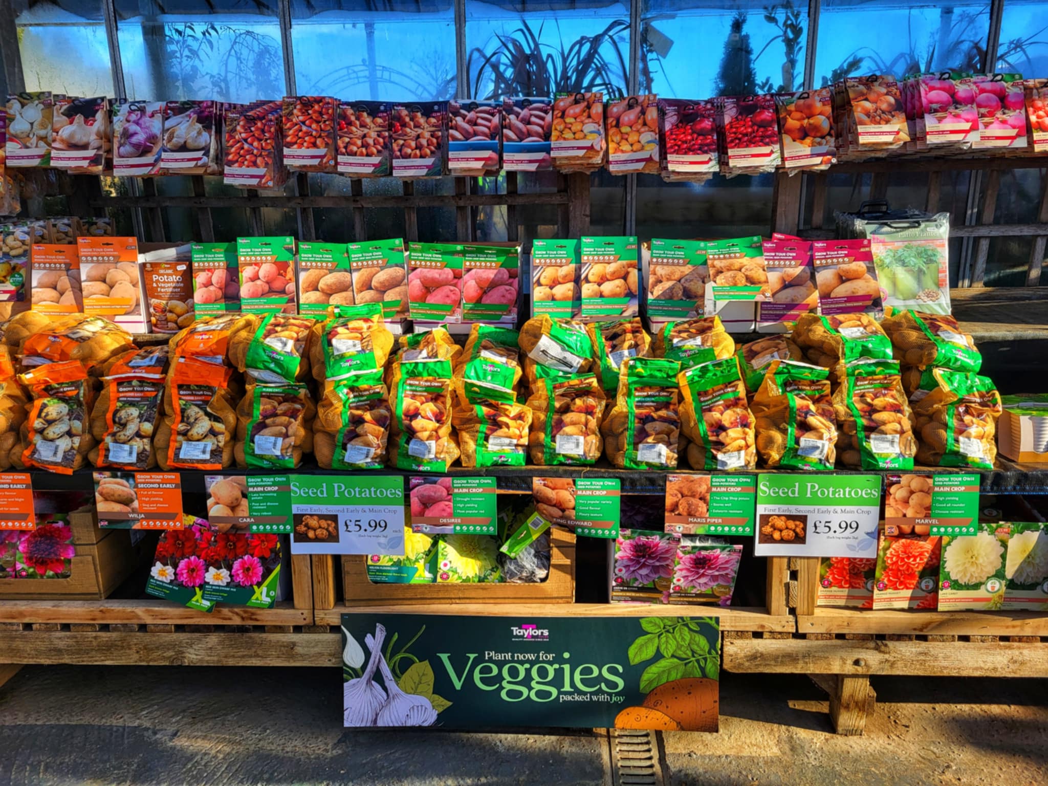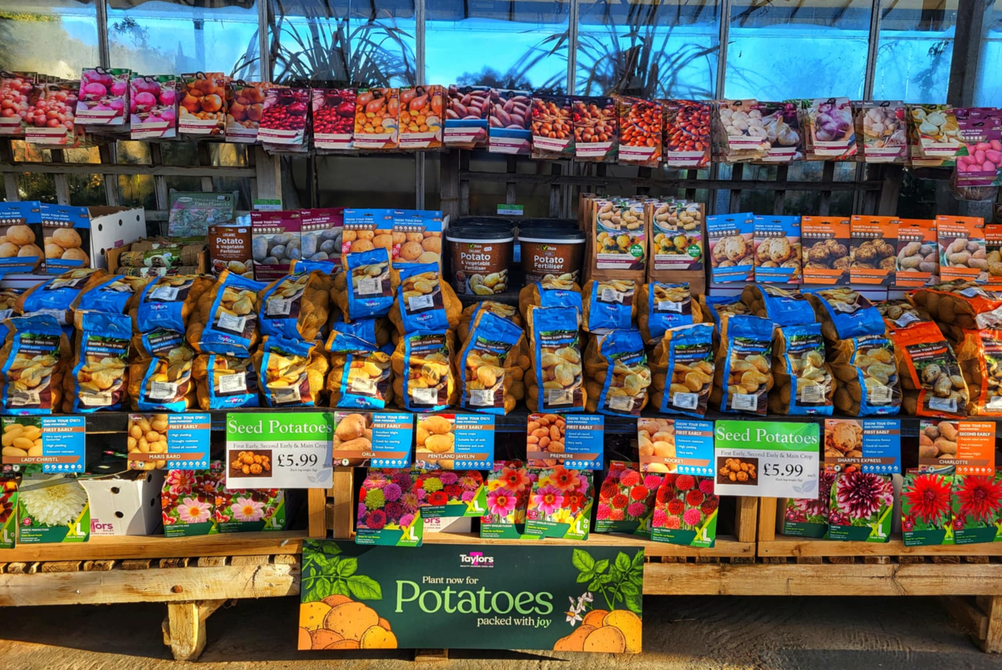 Our glass house is looking rather lovely at the moment with lots of gorgeous winter bedding, seed potatoes, garlic and onion sets, and summer flowering bulbs!