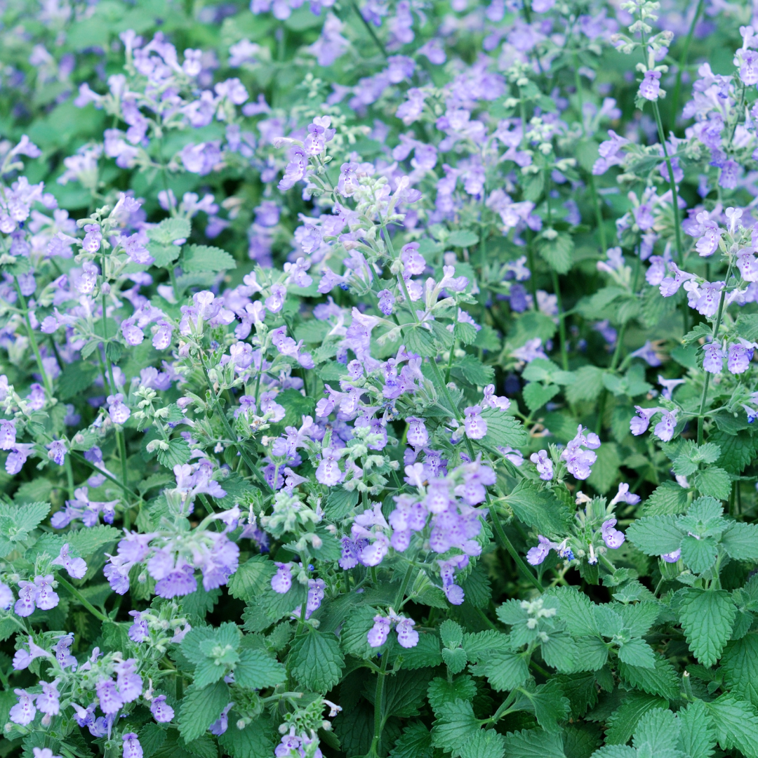 With violet-blue flowers adored by bees, catmint is both ornamental and practical, it forms soft, aromatic mounds of foliage and thrives even in poor, dry soils, you can also trim it back after flowering for a second flush of blooms.