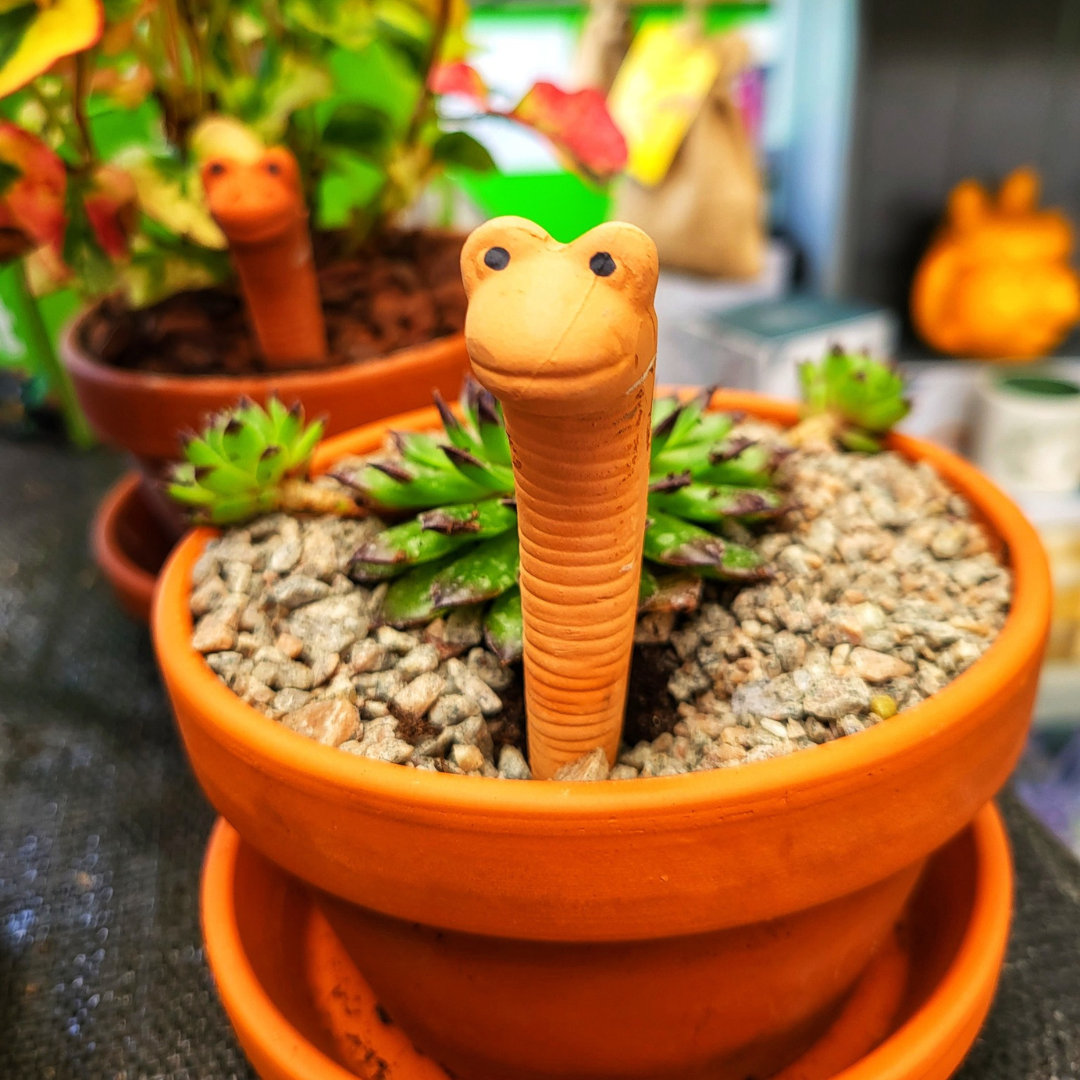 Finally, to how wet do we make the soil? Again, this differs depending on whether its containers or the borders. In the border it is better to water heavily but less frequently, this ensures the water gets down to the deeper roots, encouraging root growth and making the plant more drought tolerant. In containers, its pretty much the opposite, watering to roughly a 10th of the pot size, (e.g. if it’s a 10ltr pot, give it 1 ltr of water), ideally have a saucer underneath to catch any water that runs through and also hold it so that it can drawn back up by capillary action for the plant to use. As a rough check, push your finger into the soil to about your second knuckle and if it comes back dry, you need to water, or you could try our watering worms which are ideal for showing when watering is needed.